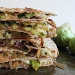 Brie Quesadillas with Brussels Sprouts, Bacon and Beer-Glazed Onions make a great anytime meal as well as an excellent option for entertaining. While I will be feeding these bad boys to Logan and his fellow Spreadheads this weekend, I also look forward to serving them at classier affairs where people will actually remember eating them. Conveniently, you’ll only need a single pan for this entire recipe, and you can easily assemble the quesadillas in advance and keep them in the fridge until you’re ready to cook them (which takes a total of 6 minutes). Do it.