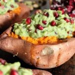 - Top each potato with plenty of pomegranate-pistachio guacamole and serve immediately.