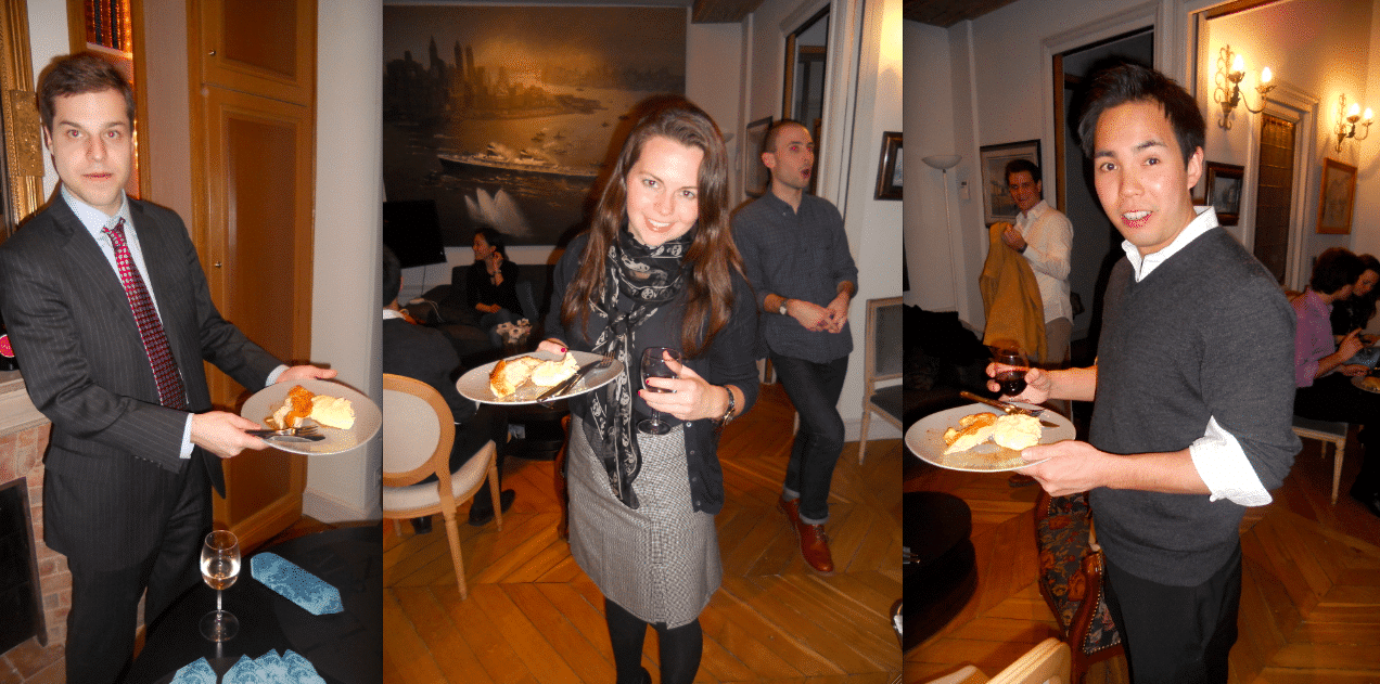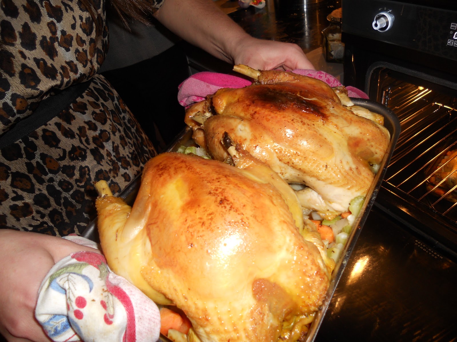 Because I had class the day of our dinner party, Liberty very generously offered to do all of the shopping. She called me from the market saying that their chickens did not look up to snuff, so she was going to try a local butcher’s shop. I admired her courage and Parisian sense of adventure, sending her forth to le boucherie with high hopes. She triumphantly called a half hour later to inform me that she had purchased the “most beautiful chickens she had ever seen.” Apparently, Liberty hasn’t seen very many chickens.