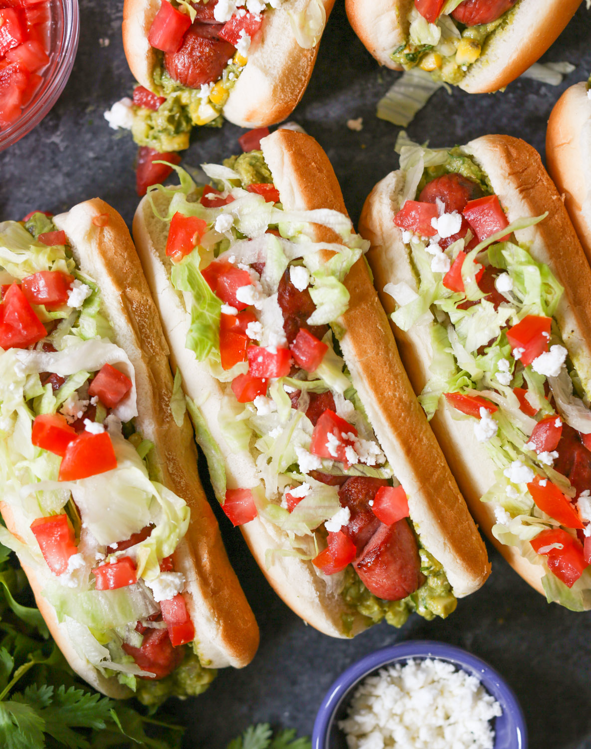 And in case you don’t win the sweepstakes or giveaway, I made you Fiesta Dogs with Street Corn Guacamole as a consolation prize…
