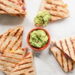• Slice each quesadilla into 3 triangles and serve immediately. Get some guacamole involved if you’re feeling festive.