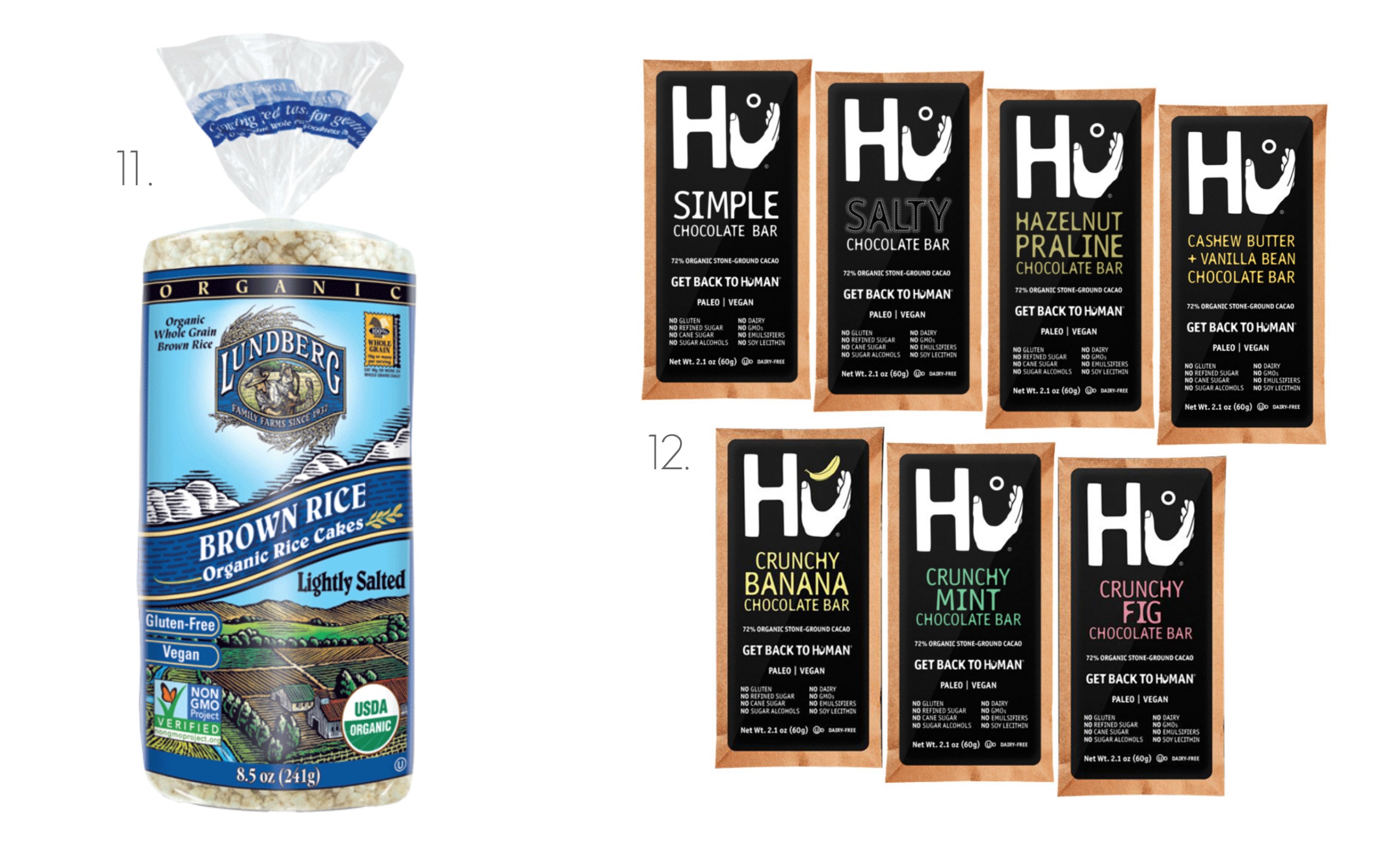 12. Dark Chocolate. Sometimes you just need a chocolate fix, ya feel me? I like to travel with dark chocolate (at least 70% so I can reap some antioxidant and mood-boosting benefits), and I’m obsessed with Hu Kitchen’s chocolate, especially the Almond Butter and Puffed Quinoa bar, which is 72% cacao and sweetened with coconut sugar. A couple squares really hit the spot.