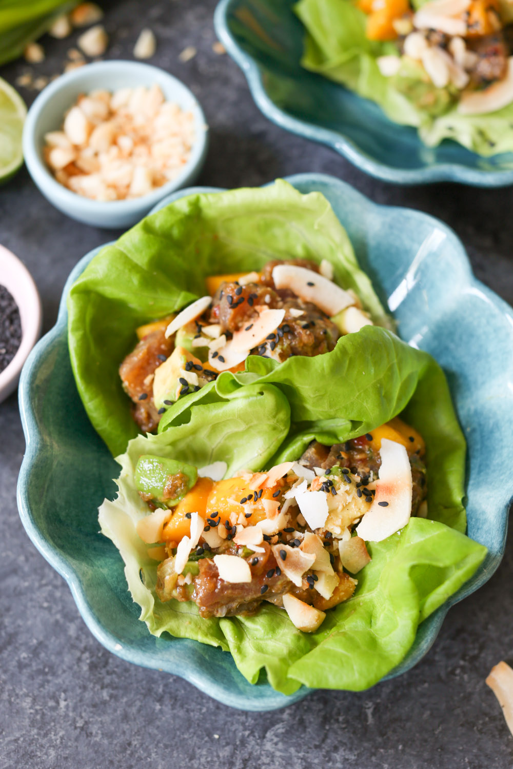 The memory of that poké haunted me in the best possible way, and I felt the urge to recreate it at home ASAFP, which I did in the form of these Spicy Mango-Avocado Poké Lettuce Wraps….
